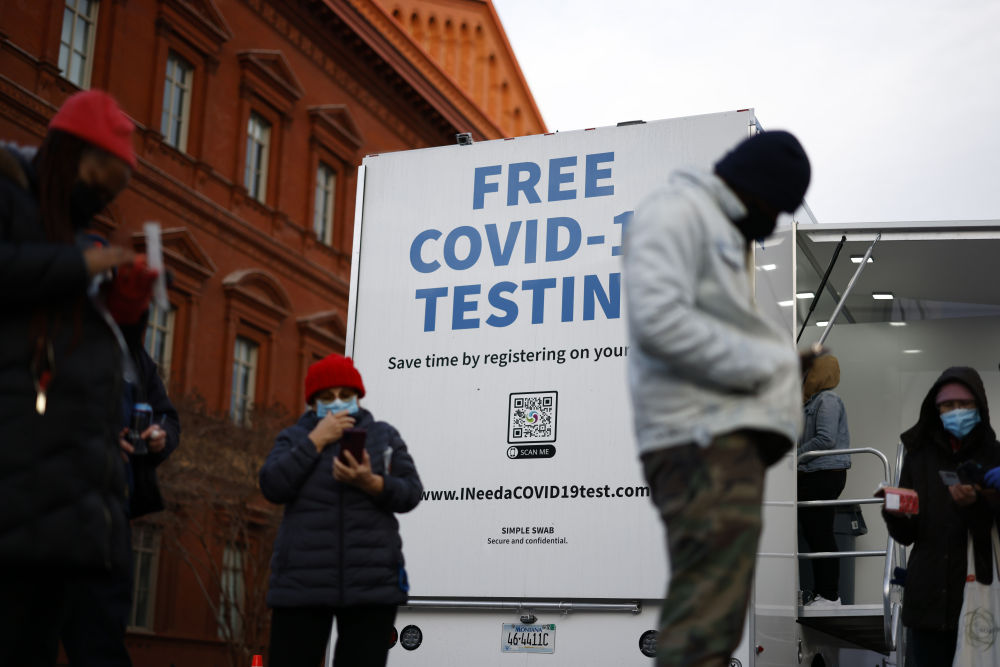 1月5日,人们在美国首都华盛顿一处流动检测点进行新冠病毒检测。新华社发 (沈霆摄)