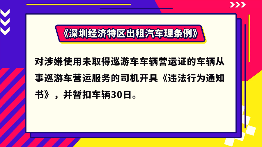 此外,如果司机取得深圳市出租汽车驾驶员证,并为对应平台注册司机平台,还可能涉嫌“为未取得出租汽车驾驶员证的人员驾驶出租汽车提供营运服务”,以及“通过预约提供服务的驾驶员与预约的驾驶员不一致”。这两项违法行为执法人员,可对相应平台发出《协助调查通知书》并在调查后,对其依法处罚。