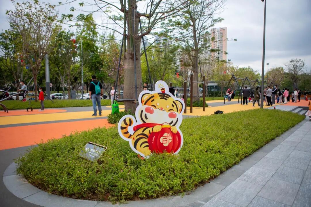春节即将来临,上步绿廊公园也被装饰一新,百花福、小萌虎、小萌娃齐上阵,年味拉满!
