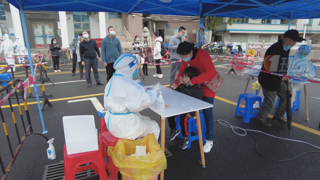 上午9点,在处于防范区的水田社区核酸检测点,石岩居民正有序的进行核酸检测。