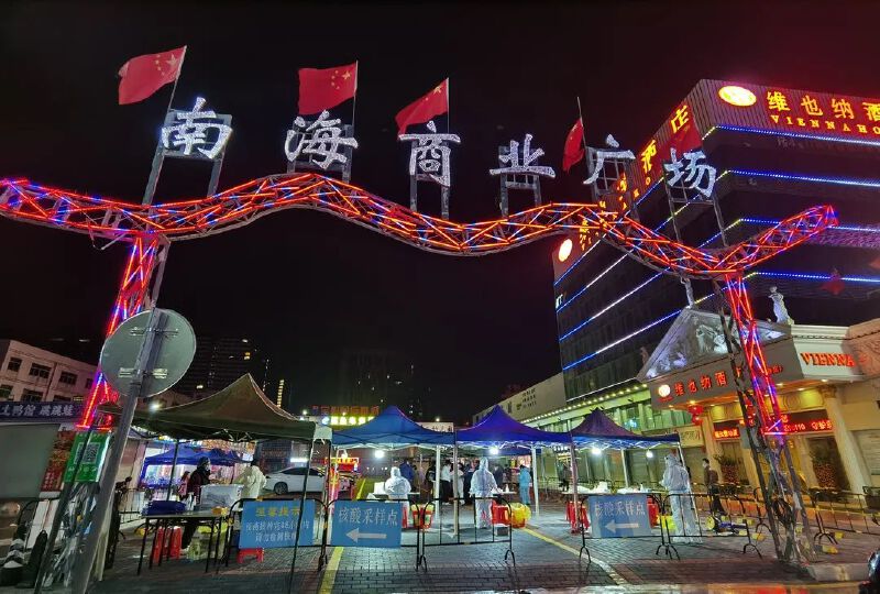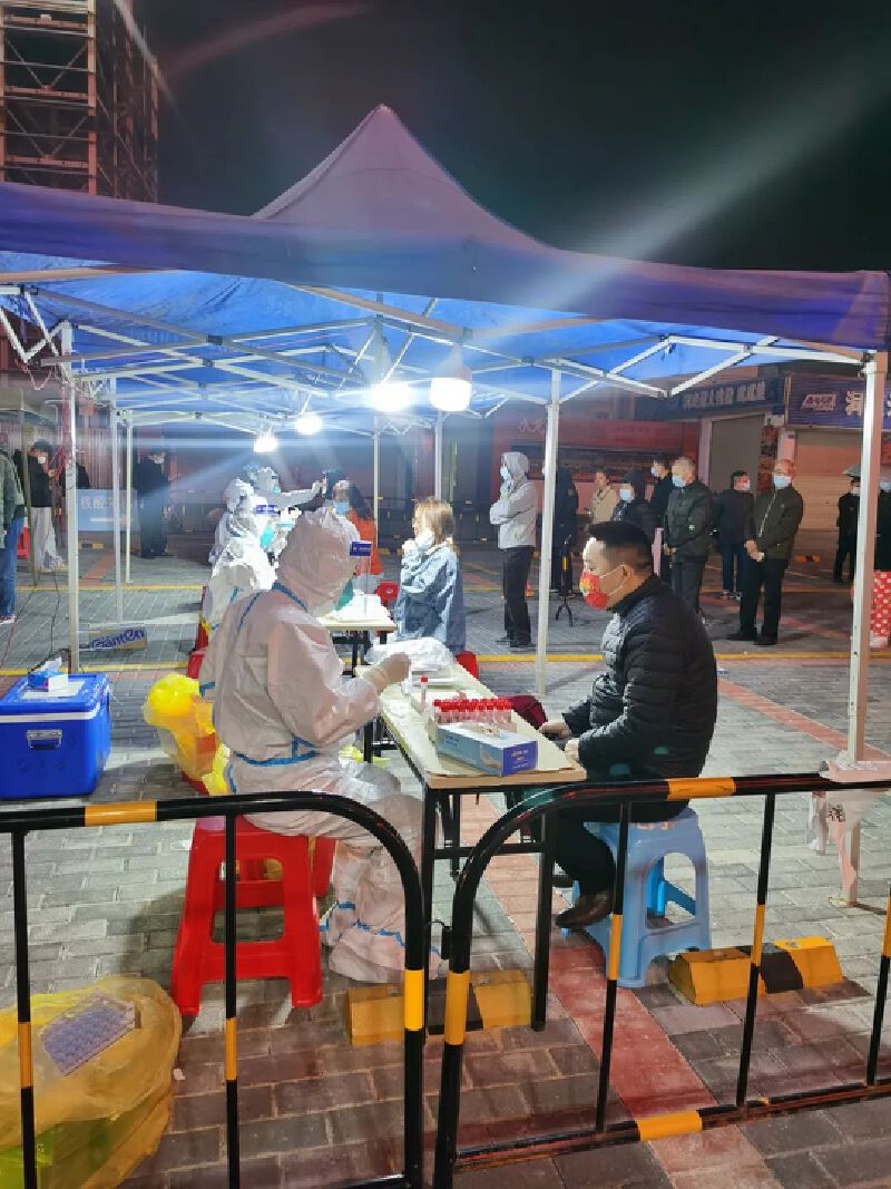 十二点刚过,在南海百货附近的核酸检测点上,一位工作人员拿起“大声公”(扩音器),向现场市民大声喊出:“祝大家新年快乐!”,同时感谢他们主动配合进行检测。