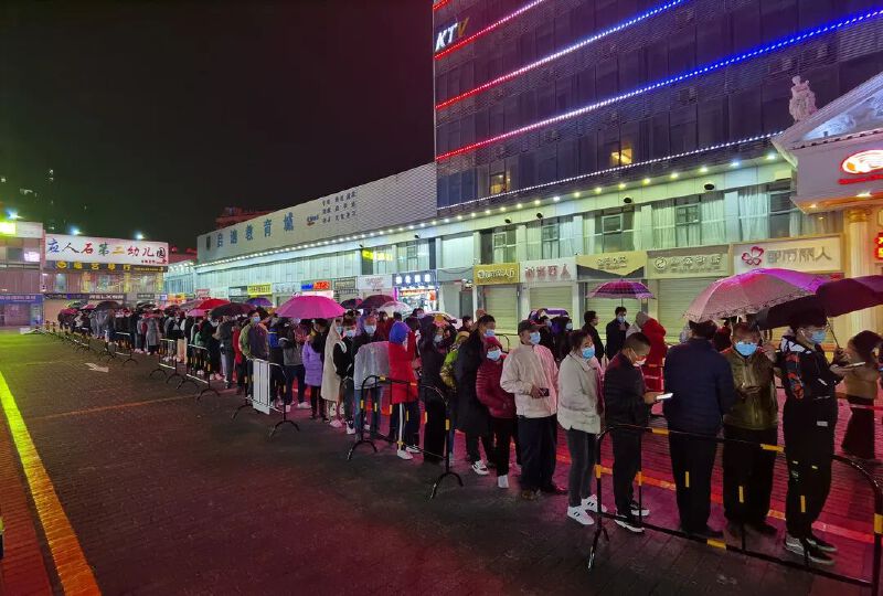 深夜十二点整,城中村住宅区响起了仿真鞭炮声,噼里啪啦的鞭炮声让年味十足,队伍里,无论认识与否,都互道“新年快乐”,一些市民用手机在线看春晚,还相互调侃道:“在核酸采样检测中守岁跨年,这个新年真让人难忘。”深夜零点零四分,天空飘下极小的毛毛雨,居民撑着雨伞排着队,队伍依然安静有序。