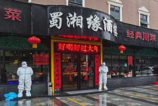 年初一早上八点半,记者来到罗租社区馨庭苑附近,这里被划定为管控区。现场,工作人拉起警戒线、立起铁栏杆,对想进入管控区的居民反复强调:“只进不出。”穿着防护服的工作人员站在沿街商铺的门廊下,随时提醒误入区域的市民。