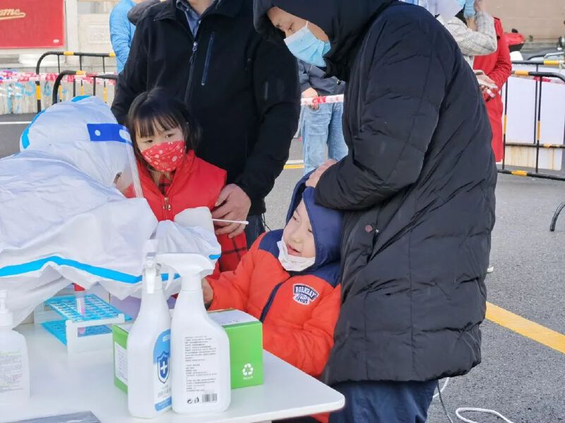 在石岩南海百货附近的核酸采样点,一对夫妻带着一名年约三岁的小男孩前来做核酸采样,小男孩坐在板凳上乖乖配合采样工作,临走时还不忘回头对着“大白”医护人员道一声“新年快乐”。