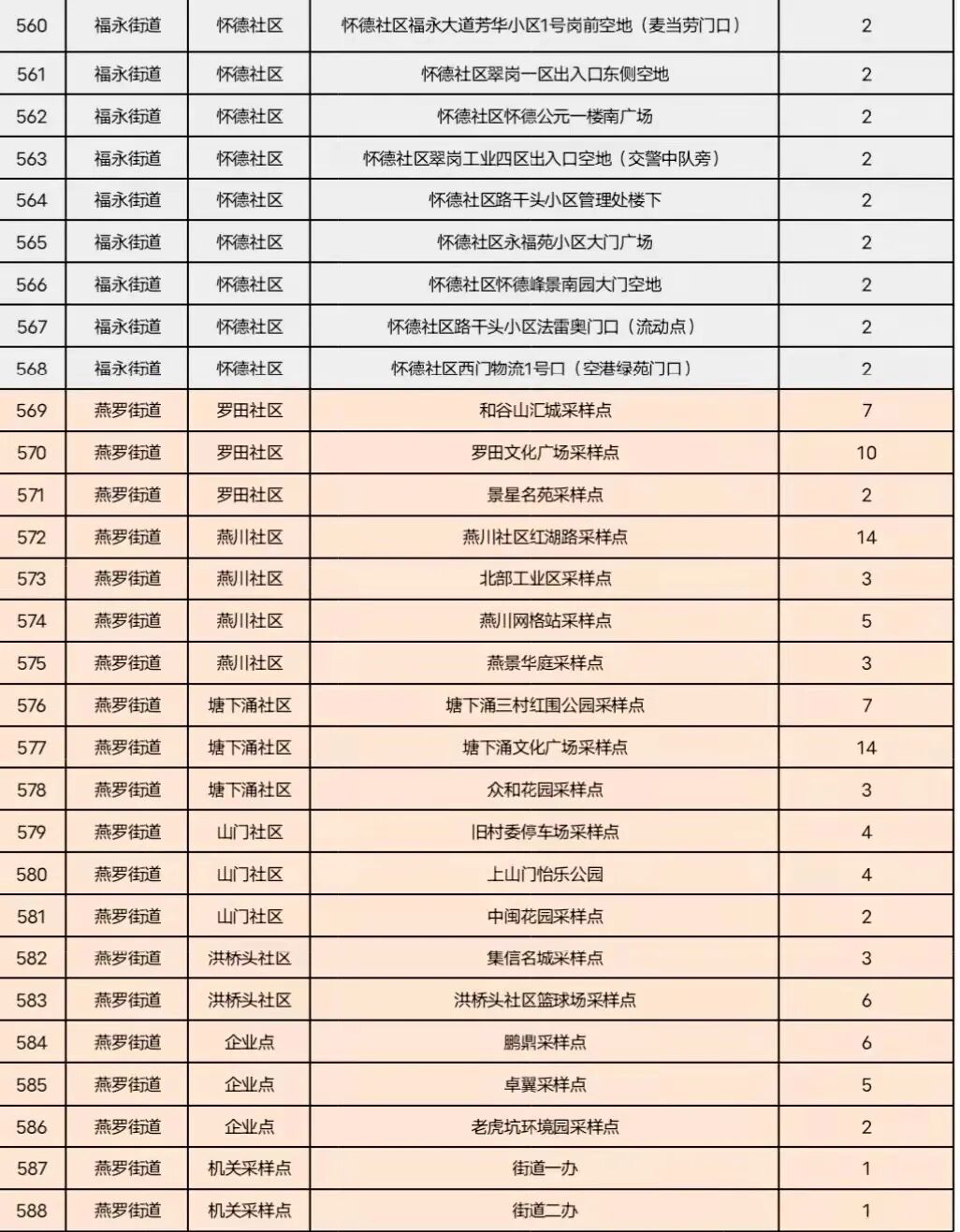 宝安区设置588个点,请居民朋友选择就近采样同时提醒,为避免出现居民朋友跑空,请大家勿过早或过晚前往