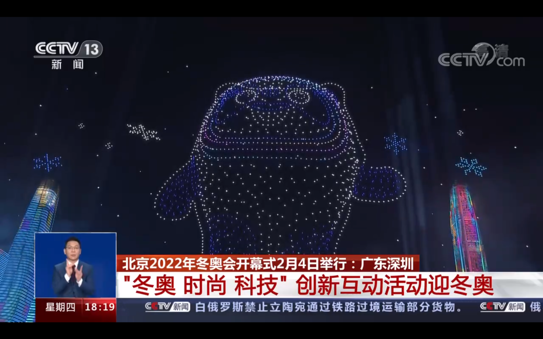 此外,导演组还用心地将深圳对冬奥的祝福通过弹幕打在天空上,用无人机作为载体,深圳市民的祝福、期盼,在夜空中闪亮呈现。