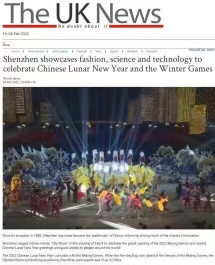 (原标题《全球媒体点赞冬奥会开幕式上的深圳元素》)