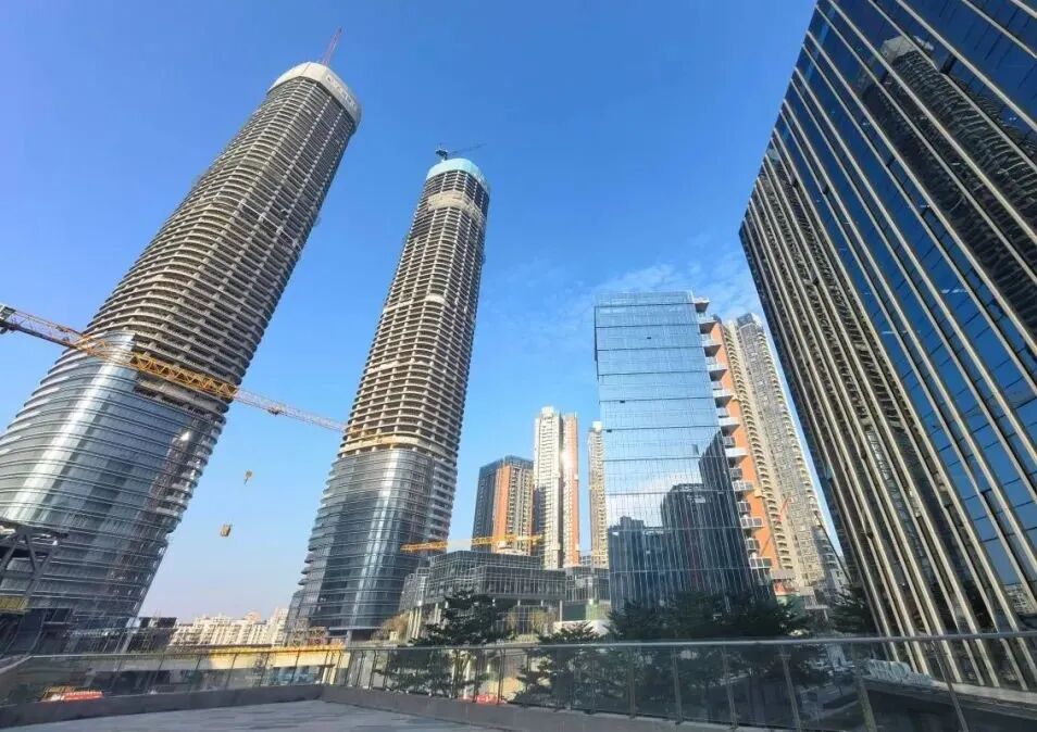 在龙岗区坂田街道,“巨无霸”项目——深圳·星河双子塔项目建设工地现场一片繁忙。两座等高369米双塔建筑年前已实现主体封顶,按计划将于明年3月份整体竣工,明年底接纳企业进驻。届时,这里将成为一个聚集新一代信息技术、高端装备制造、文化创意、生命健康、科技金融等五大核心产业,容纳近3万人工作与生活的天际立体社区,形成更强大的产业集聚效应,推动万亿级世界电子信息产业集群承载区的建成和发展。