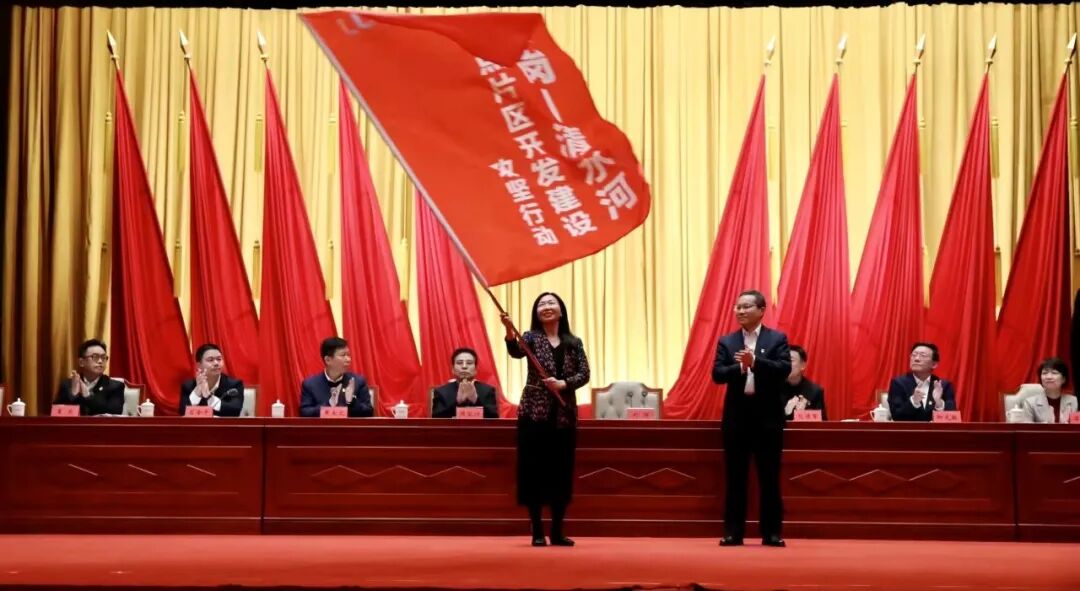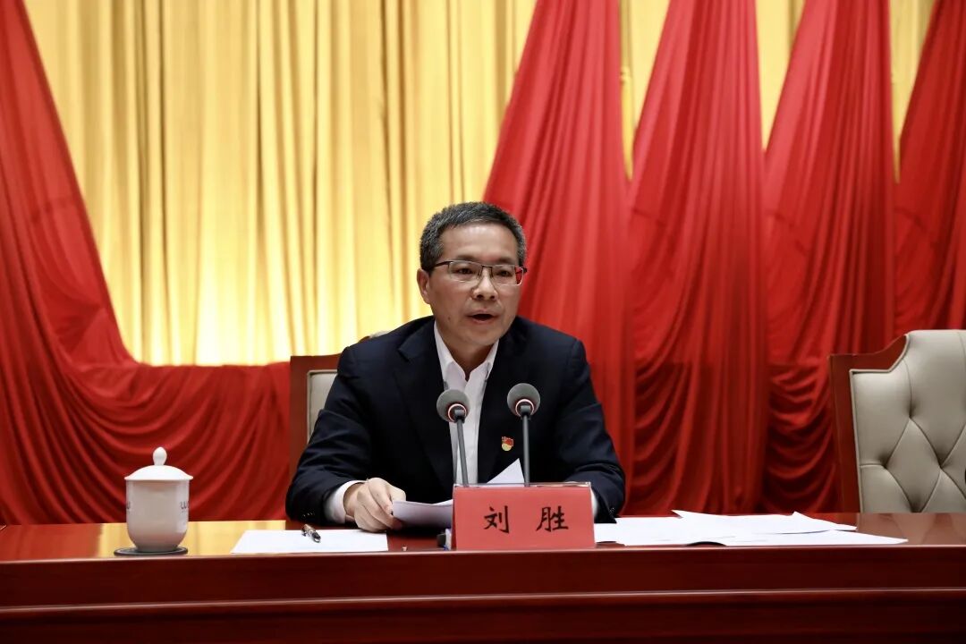 大会现场,刘胜、范德繁为2022年攻坚克难任务的11个攻坚行动总牵头单位授旗,领旗人进行现场宣誓。