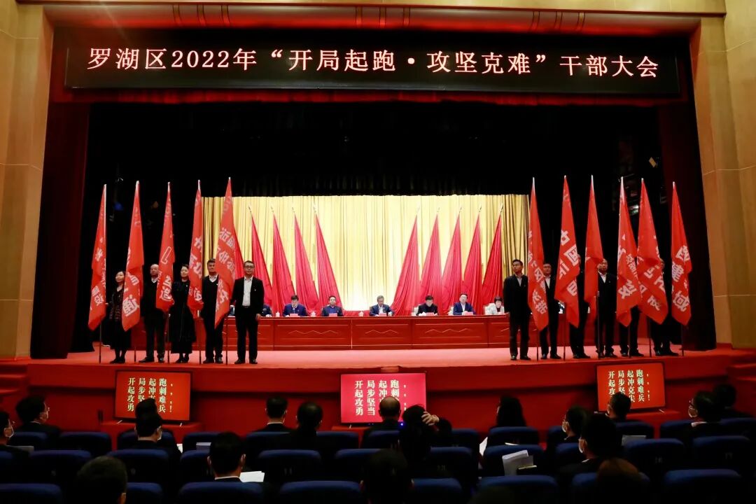 此次大会部署了2022年罗湖区攻坚克难任务。罗湖区委书记刘胜,区委副书记、区长范德繁,区人大常委会主任周益川,区政协主席柳光敏等区四套班子领导出席会议。区委副书记、政法委书记黄生文主持会议。刘胜、范德繁现场为11个攻坚克难任务牵头单位授旗。