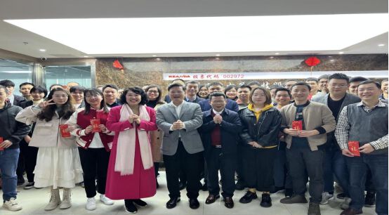 “新春如意,恭喜发财!”喜庆红包“逗利是”是深圳企业迎新年的传统习俗,一大早,科安达董事长郭丰明、总裁张帆给全体员工派送新年红包。热热闹闹的场面,红红火火映照在每一个喜悦的脸庞。“恭祝虎年鸿运,业绩再创新高。”