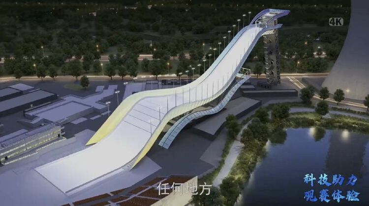 此外,为了给线上观众制造“亲临现场”的感受,让观众欣赏到首钢滑雪大跳台的壮美,百度智能云利用虚拟现实技术对首钢大跳台进行了三维重建与虚拟还原,打造1:1场馆3D模型。观众可以通过3D场景漫游的形式,从远景、全景、近景等多角度自由视角观赏大跳台,并可以切换日景、夜景、水景等不同的视觉效果,周围环境、跳台弧度、赛道难度通通一览无余。
