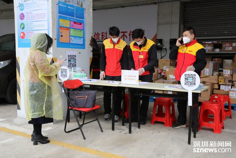 记者在现场看到,和平路邮检楼消杀点集中了邮政速递、联邦快递、优比速和中外运敦豪等4家快递企业取件点,各点位取件业务有序进行。每个公司的取件点旁都有一个印有“罗湖防疫”字样的二维码,取件人扫码后,需要按实际情况填写取件人及收件人的联系方式、证件号码、住址,收件类型以及拆件方式等信息。经过现场证件资料核验,取件人佩戴好手套后方可取件。