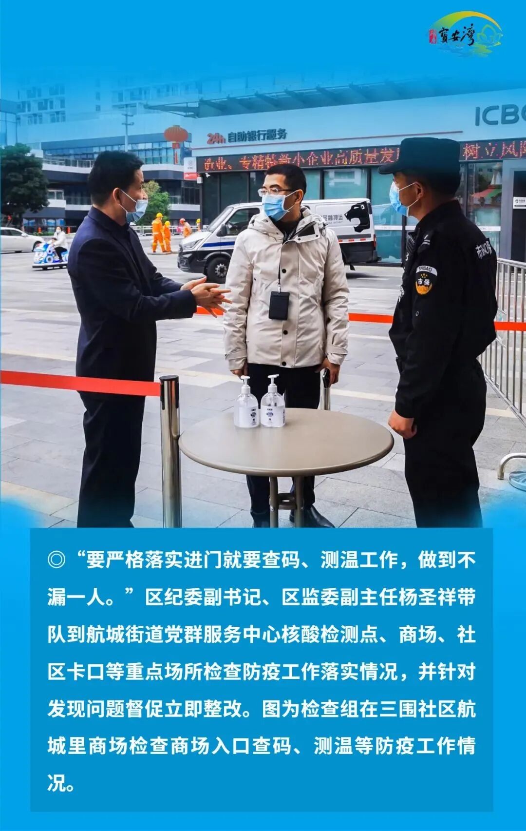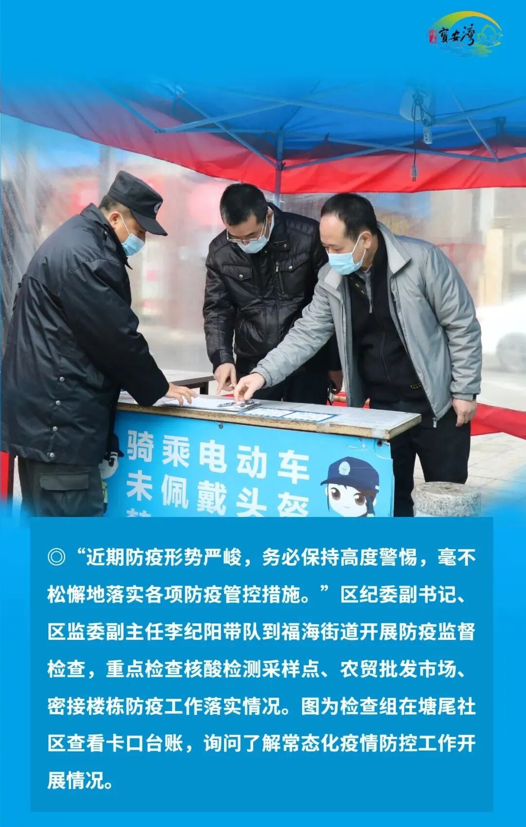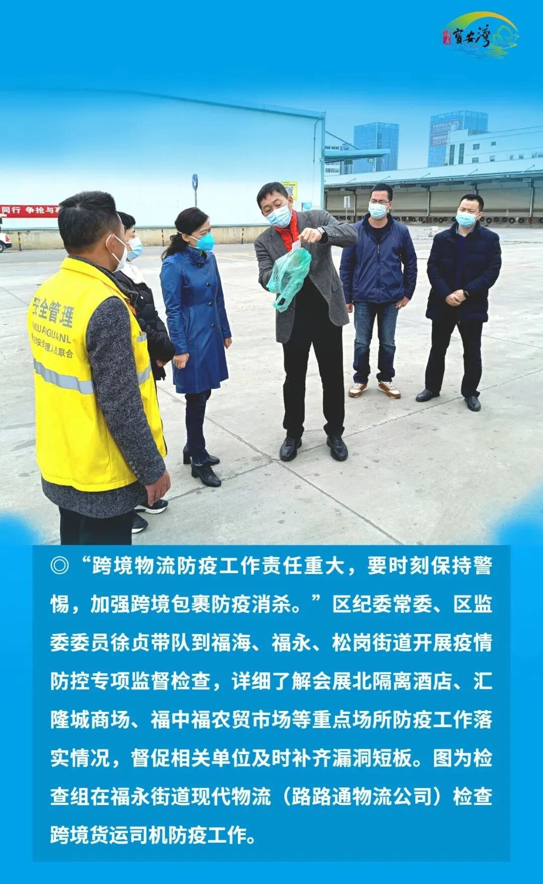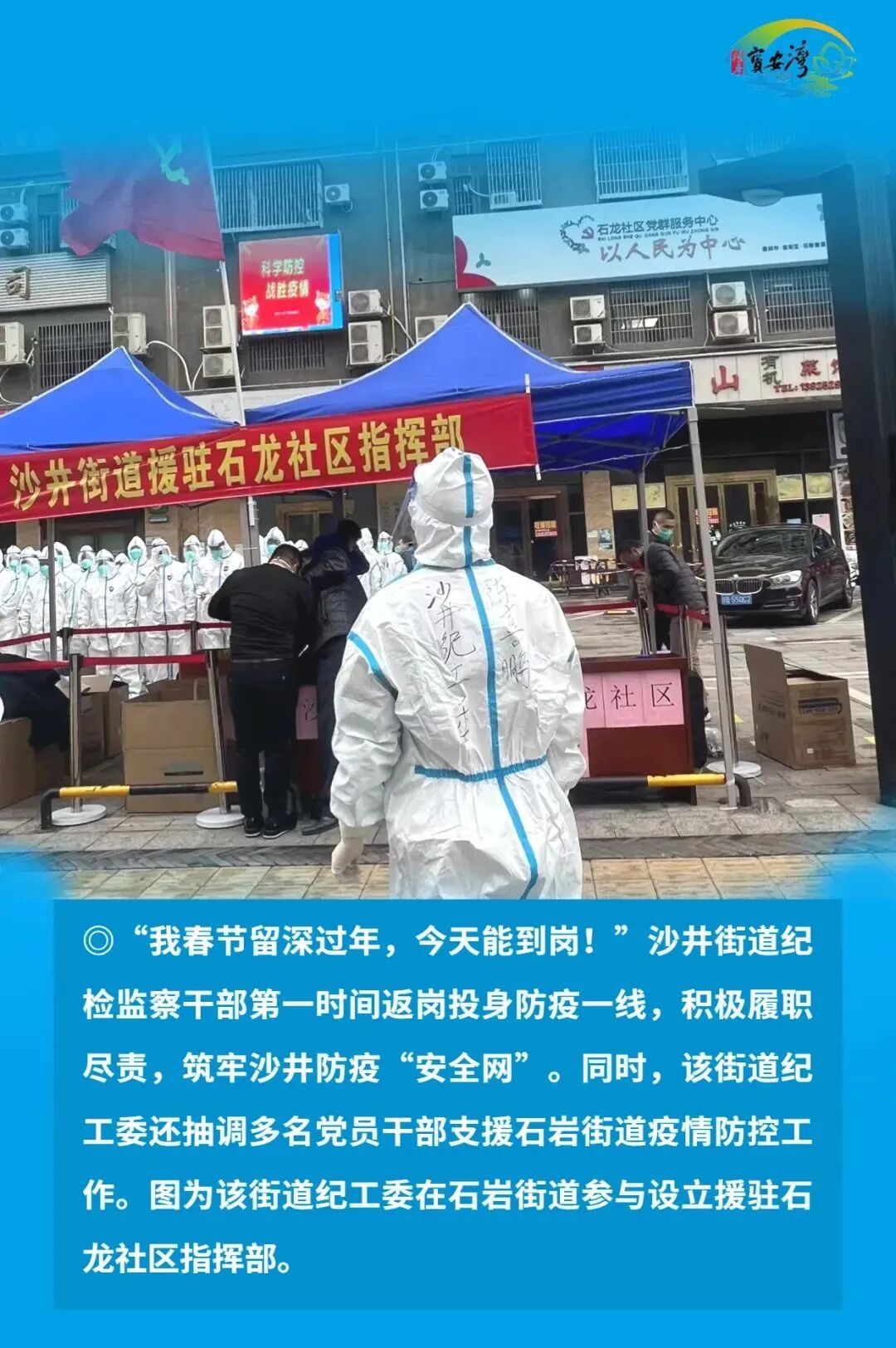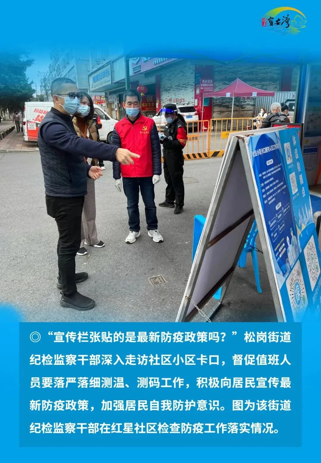 宝安区纪检监察干部毫不放松抓好常态化疫情防控,始终在战“疫”一线争分夺秒、披荆斩棘、奋勇前进,以“无我”状态为宝安战疫贡献力量,切实筑牢疫情防线,坚决以硬干部硬作风硬措施打赢这场疫情防控硬仗。