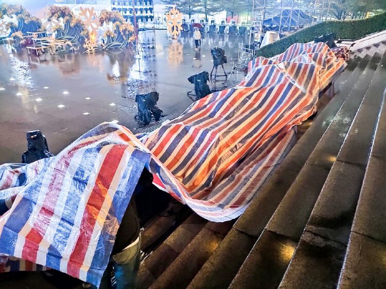 “从接到任务,到正式演出只有3天时间,这给工程实施带来了极大的挑战。”张峰介绍,春节期间接到任务后,同事们第一时间返岗,并迅速完成了机器的调配与入场。第2天进行设备调试和测试,一直忙到了凌晨4点。第3天拍摄录制时突遇暴雨天气,又临时购买了防雨篷布,现场5位同事一边用身体支撑篷布,防止机器被雨淋,一边抓紧调试。最终顶着寒冷的天气冒雨作业,一直干到凌晨5:30。