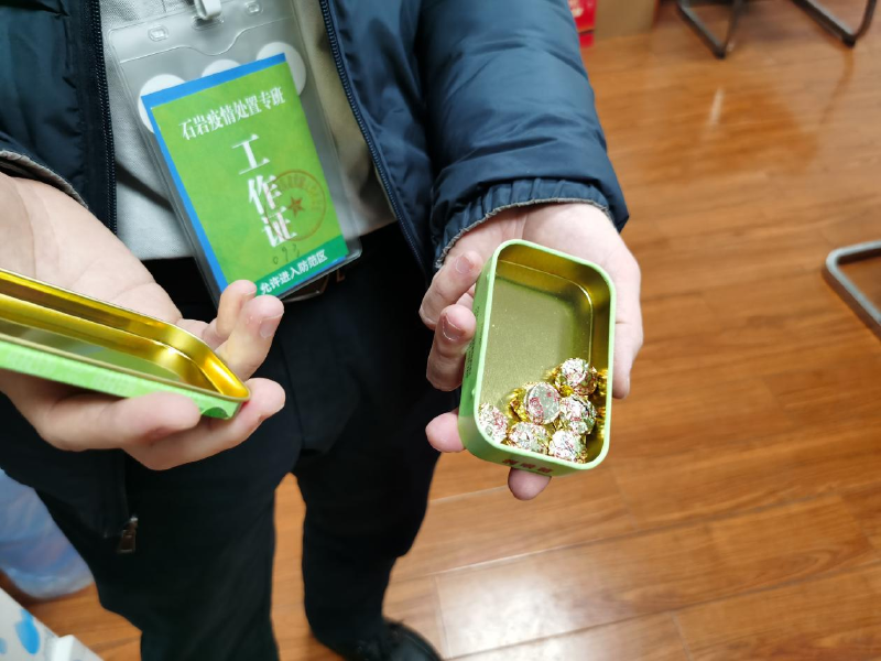 张旭韬向记者展示热线小组接线员准备的润喉糖,刚买了两天的润喉糖只剩6颗。