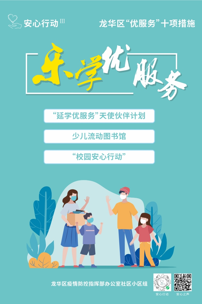 接下来,龙华区将加强“校园安心行动”线上线下服务平台建设,着力关注学生群体心理健康;积极应对延迟开学的政策变化,针对初三、高三等面临升学压力的学生群体,特别推出“乐学天使伙伴计划”,邀请过去两年的优秀毕业生与他们结对子,通过分享学习备考心得,缓解情绪压力;针对防疫工作者子女无人照护的难题,在党群阵地打造“无忧角”,开展相关照护服务。