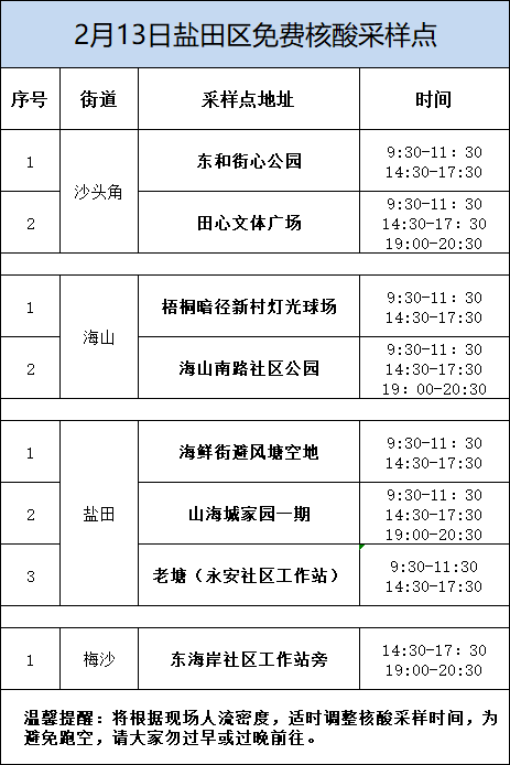 需要注意是,免费核酸检测采样点名单及检测时间将根据实际情况进行动态调整,请市民持续关注。
