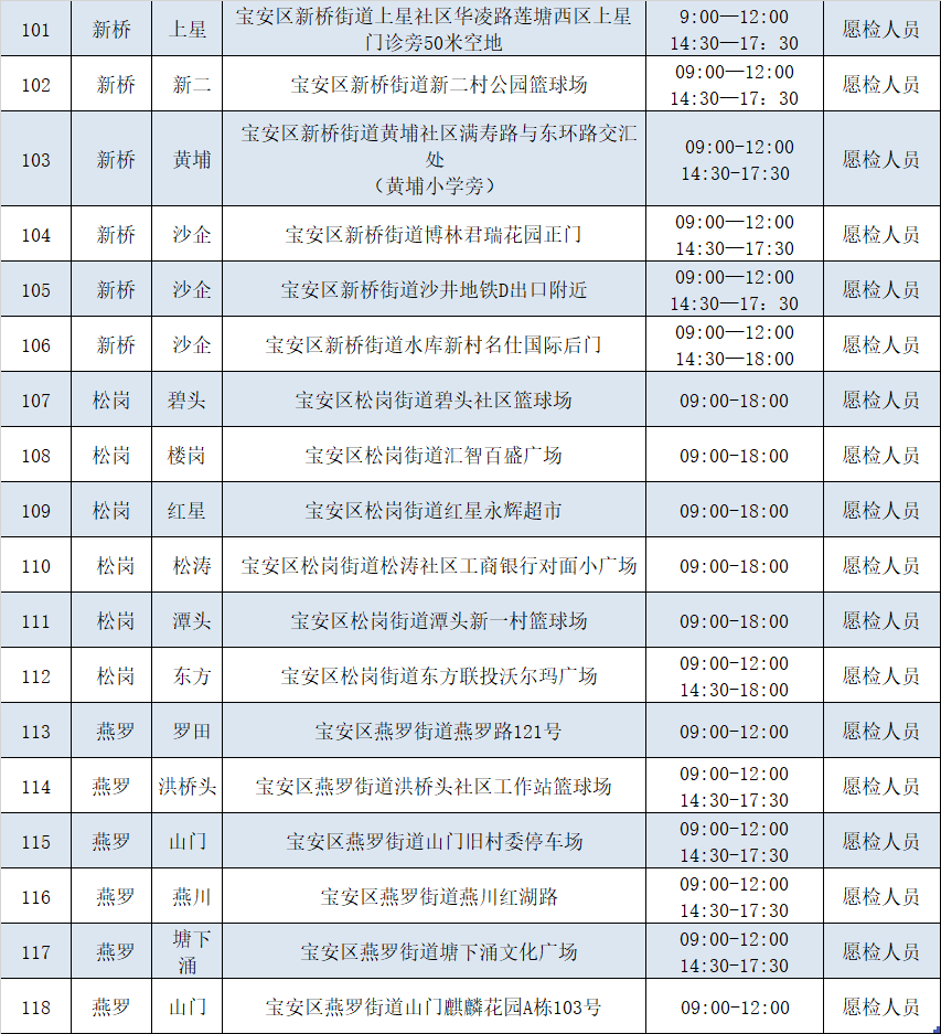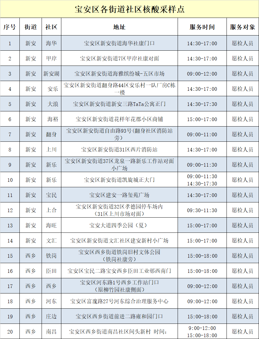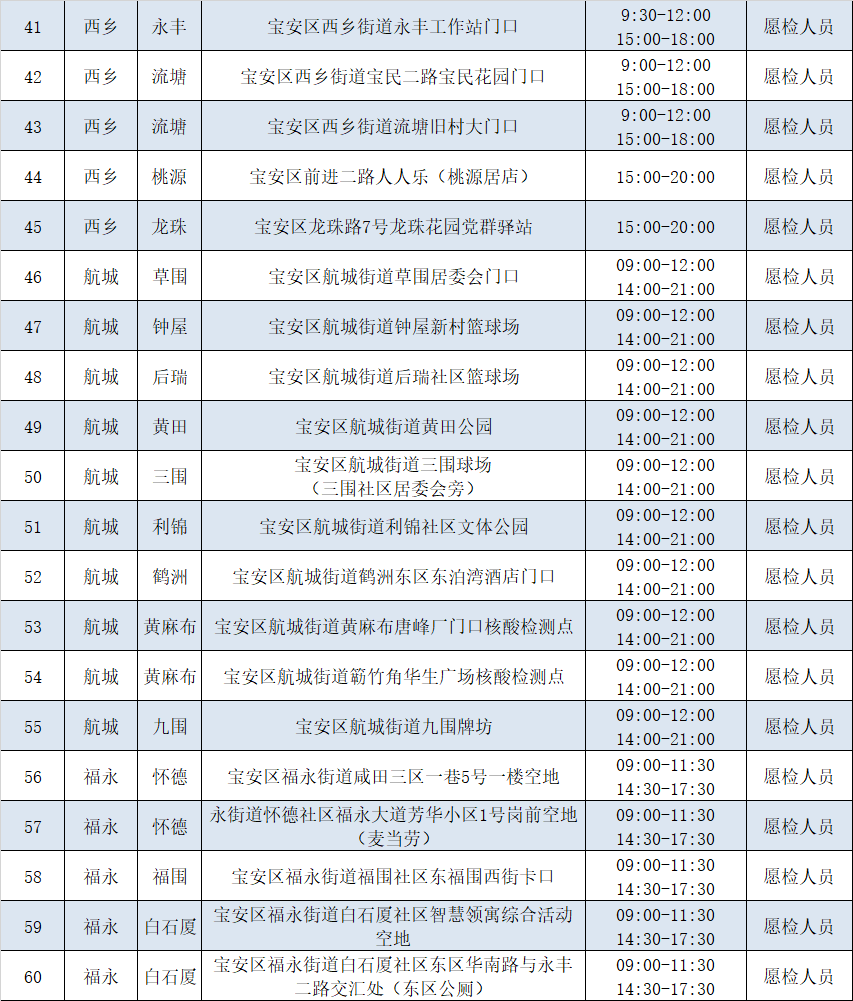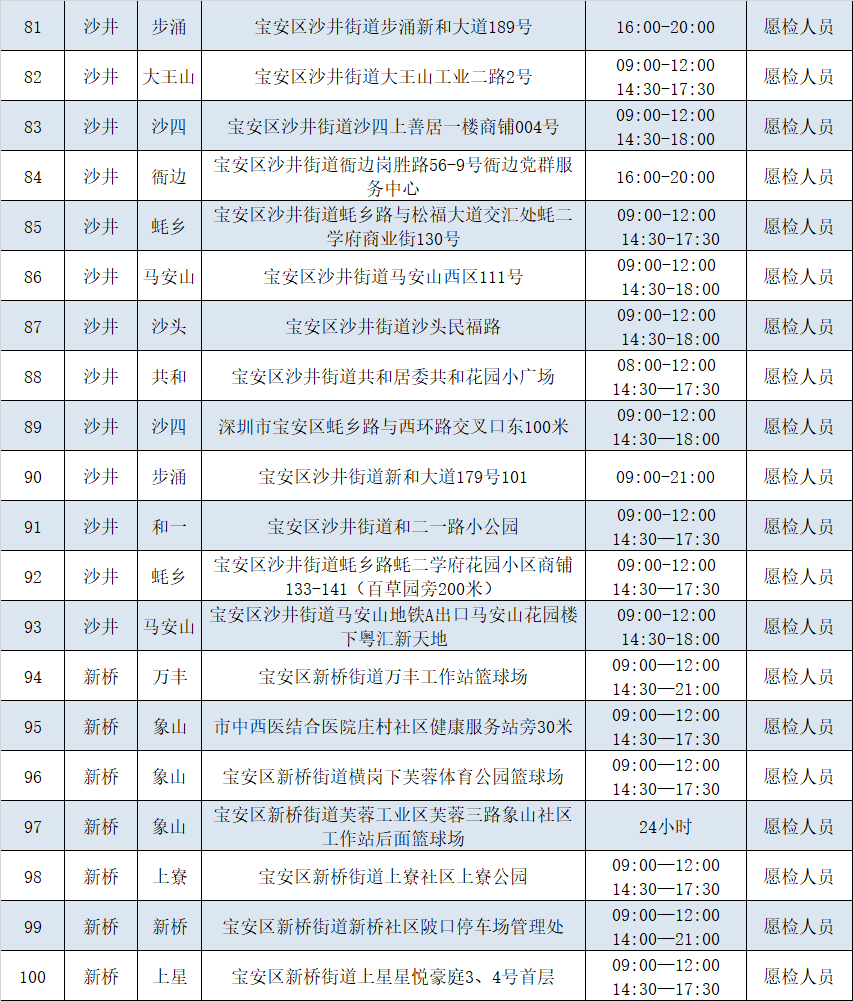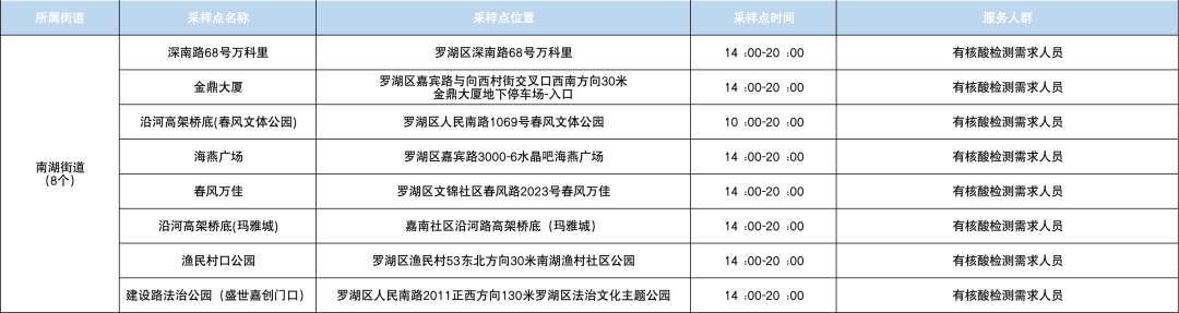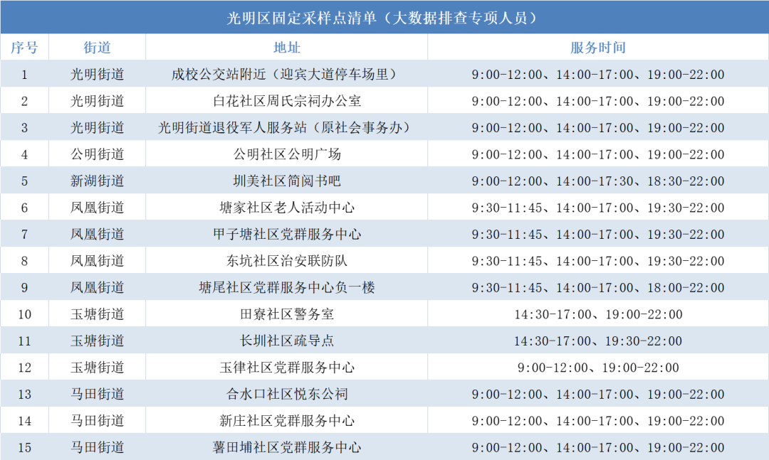 另,石岩街道执行特殊疫情防护政策,核酸点不在此次公布范围。