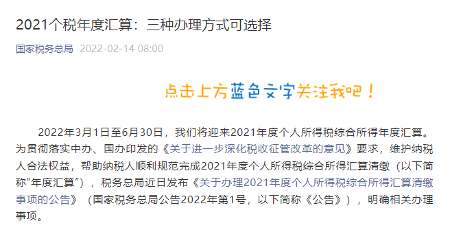 (原标题《2021个税年度汇算来了 三种办理方式可供选择》)