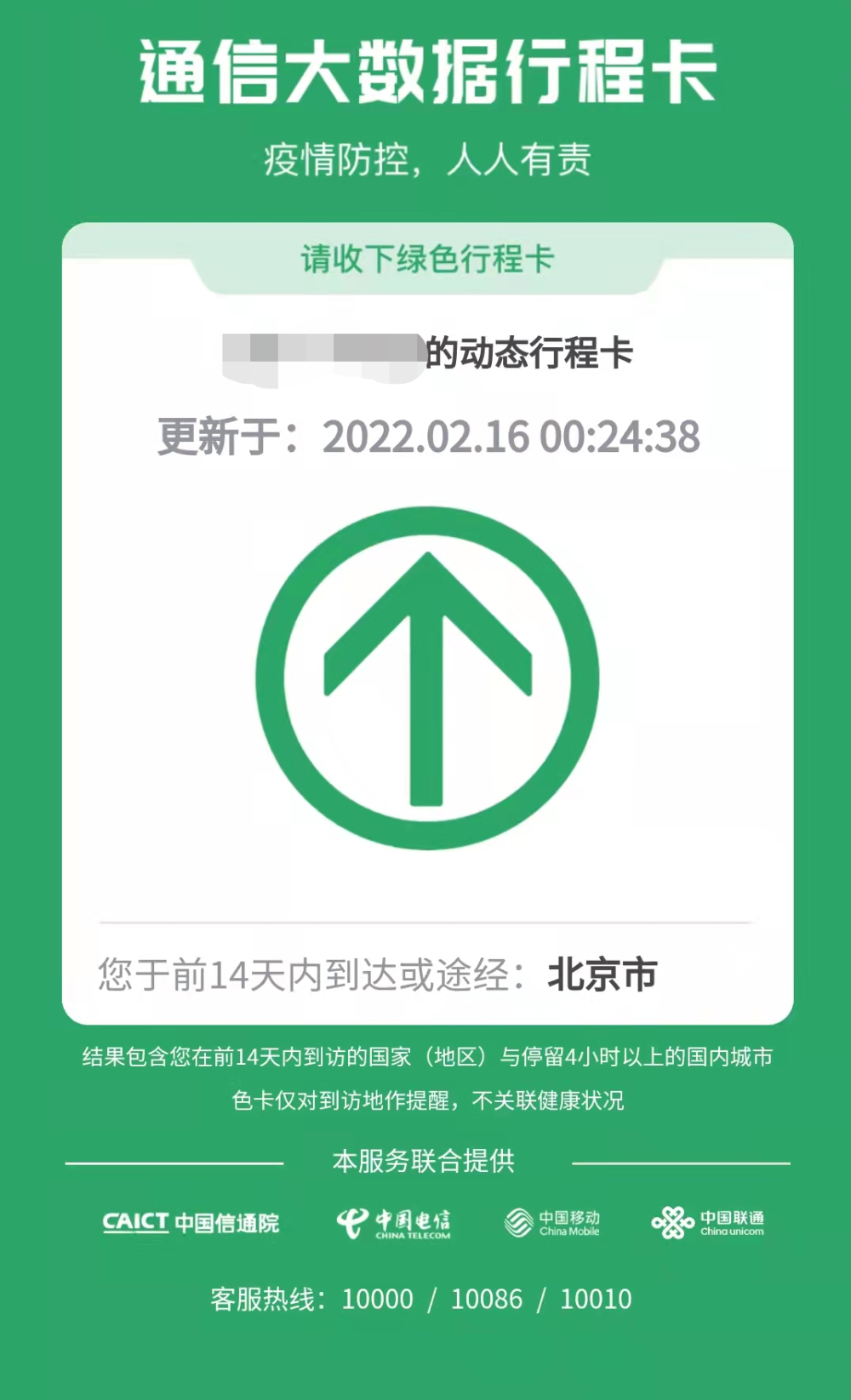 此外,行程卡上,北京市后的*(星号)已消失。