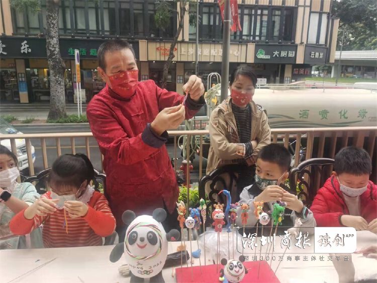 在捏面人的摊位,记者看到,现场的居民和小朋友正跟着捏面人大师一起学习制作“冰墩墩”,大家一边感受传统文化的魅力,一边学习制作炙手可热的冬奥会吉祥物,感觉这个元宵节意义非凡。