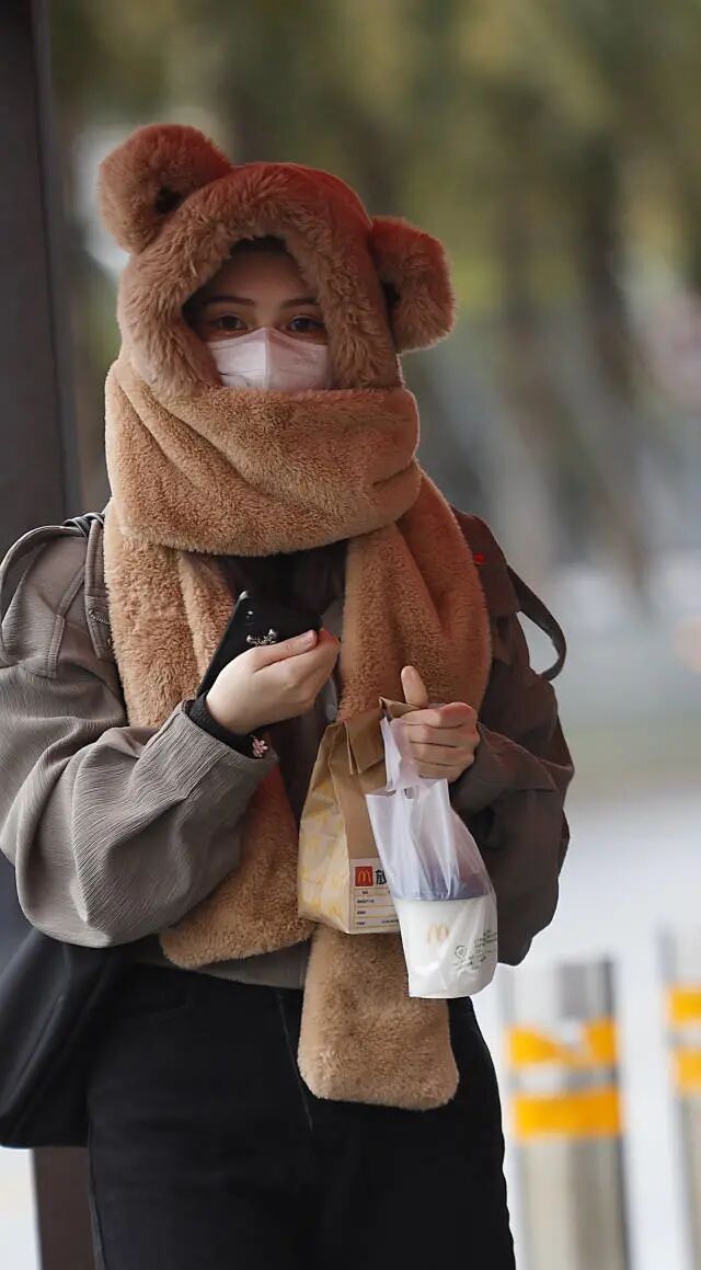 斗笠、雨衣、各式的帽子、防风头盔、呢子大衣…..从19日起,深圳街头,开始上演一场御寒魔法“时装秀”。