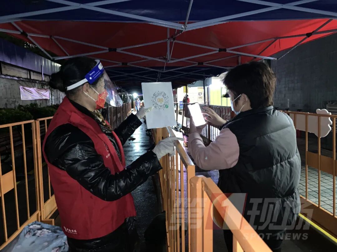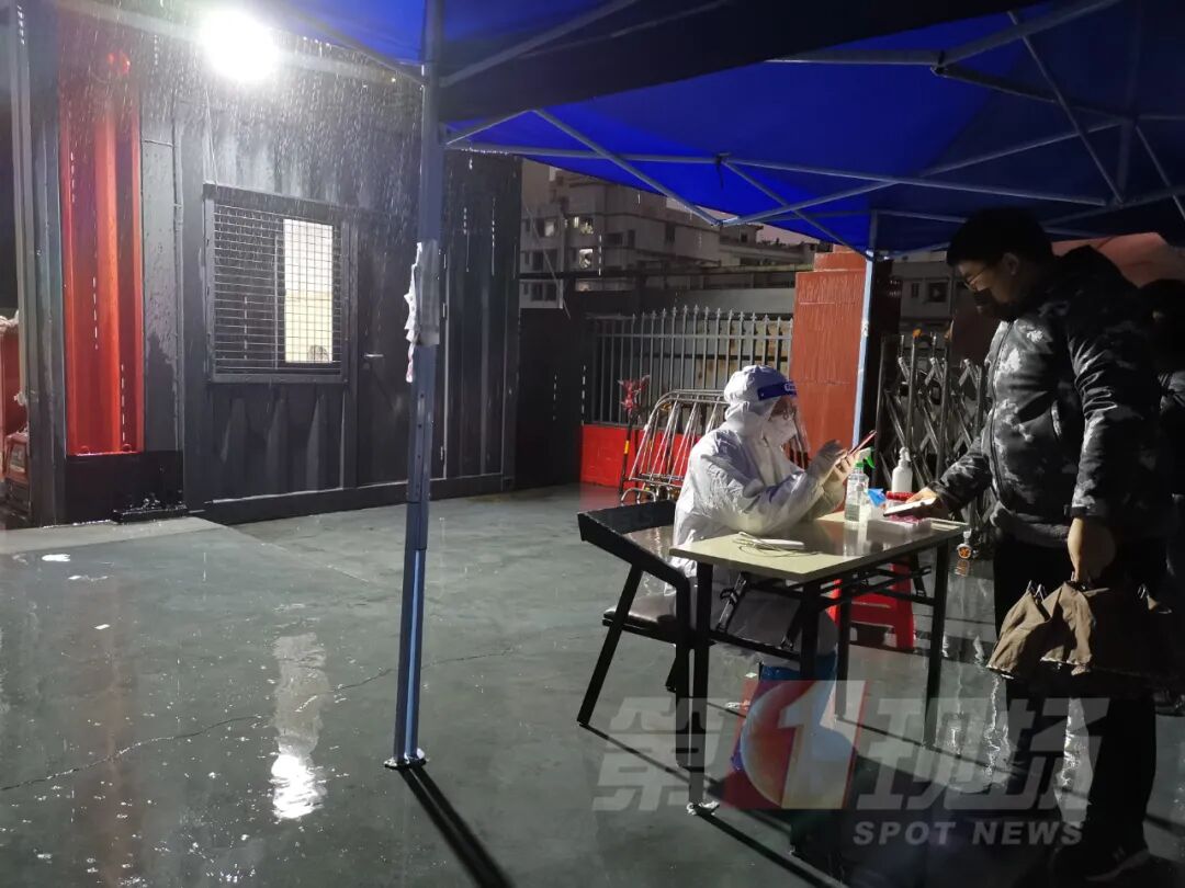 龙岗坂田街道杨美社区,防疫工作人员同样无惧寒风雨夜,连续13个小时坚守岗位,守护着小区居民。