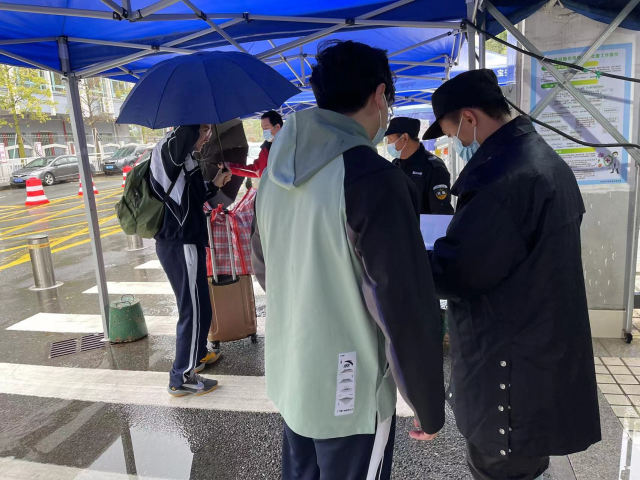 为确保高三学子平安、有序返校,今天早上8点该校宋绍鹏校长、王淑琴副校长、李佳茂副校长分别带领高三年级的老师们在学校南门、西门、北门迎接学生,老师们在大雨中为同学们指引、检查24小时核酸、协助搬运行李。除此之外,学校全体生活老师也分布在3个校门帮忙学生搬运行李物品,目前高三学子基本已经返校。