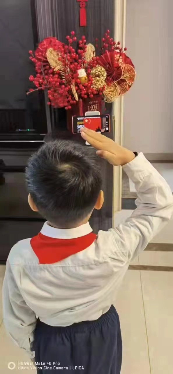 2月21日,龙岗区坂田实验学校全体师生通过网络如“约”相聚,共同参加《向春光,展新望》为主题的线上升旗活动。屏幕里,师生们身着整洁服装,立正敬礼,高唱国歌。
