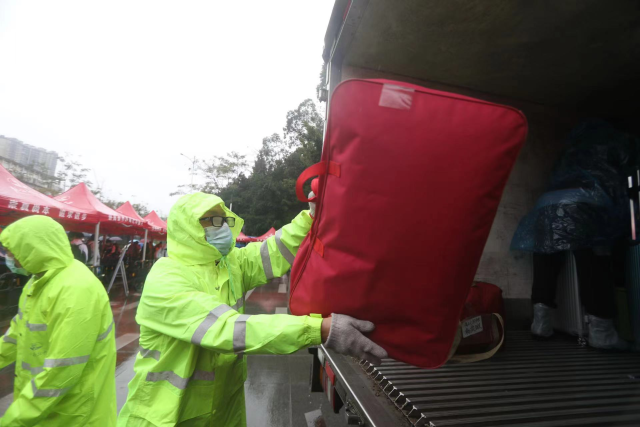 为迎接新学期线上学习,2月19日,布吉高级中学高一年级与邮政部门联系,组织党员教师义工和部分青年班主任,把学生教材邮寄到学生手上。