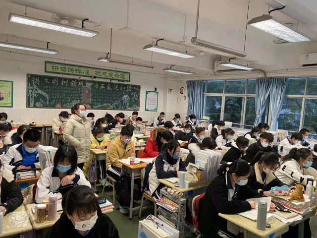 2月20日,高三学生就已返校。校长宁革在开学典礼中讲到“面对疫情带来的风险与不易,寒假前我们已经开展了两周的线上教学,上周我们也已经开展了假期作业辅导,今年的开学典礼与往日不同,高三在校,高一高二隔着屏幕,但一如我们所坚信的,寒意逼人,春天终至,所有的阴霾与迷雾,都会因风穿堂而过被驱散。”