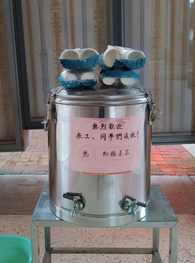 为帮助师生御寒,南头中学也准备了红糖姜茶供师生们饮用。