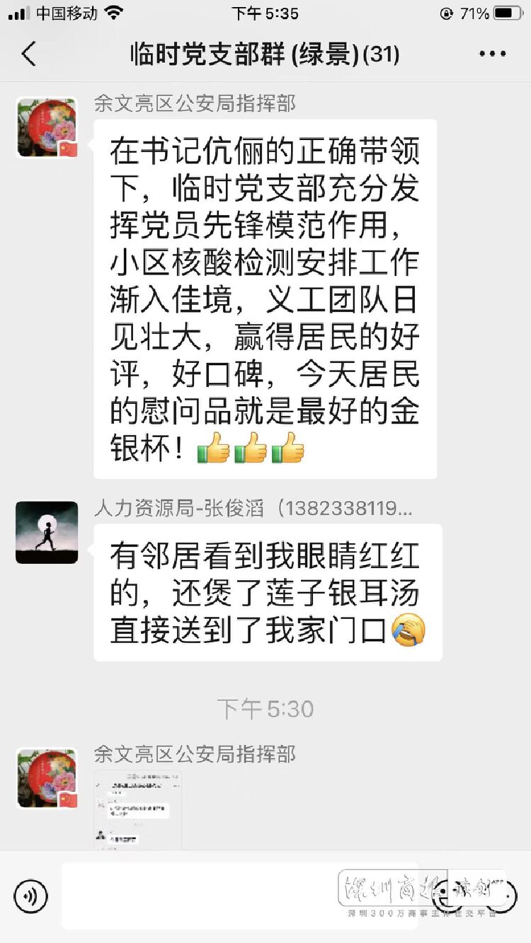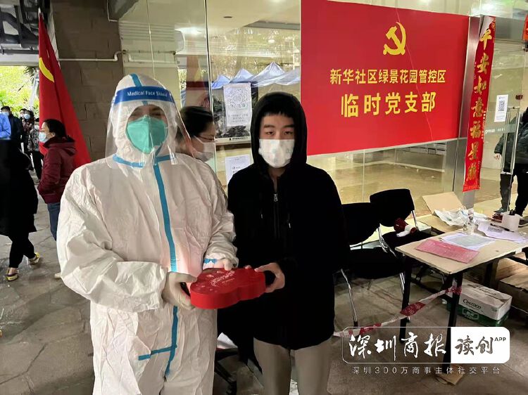 “临时党支部充分发挥党员先锋模范作用,小区的核酸检测安排工作渐入佳境,义工团队日渐壮大,赢得居民的好评、好口碑。”绿景花园临时党支部成员来自福田区公安局指挥部余文亮坦言,今天居民送来的慰问品就是最好的金杯、银杯。