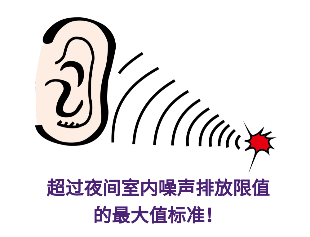 经组织环境检测人员赴涉案小区进行声环境现场测量,涉案房屋卧室夜间最大电梯噪声为47分贝,已超过《社会生活环境噪声排放标准》GB22337-2008表2中,对1类声环境功能区A类房间夜间室内噪声排放限值(等效声级)的最大值标准。