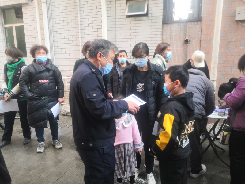网格员为参会人员派发《居家用火用电用气》安全知识宣传单。