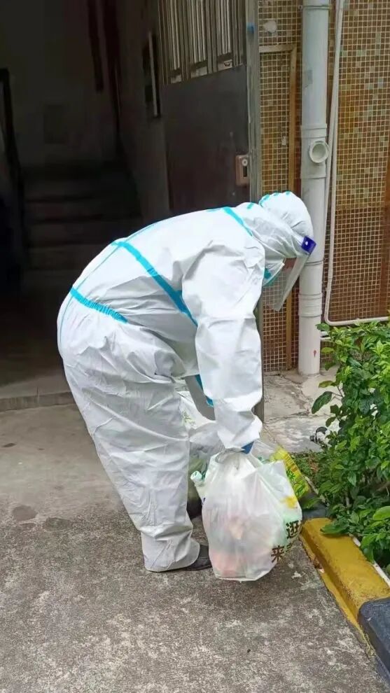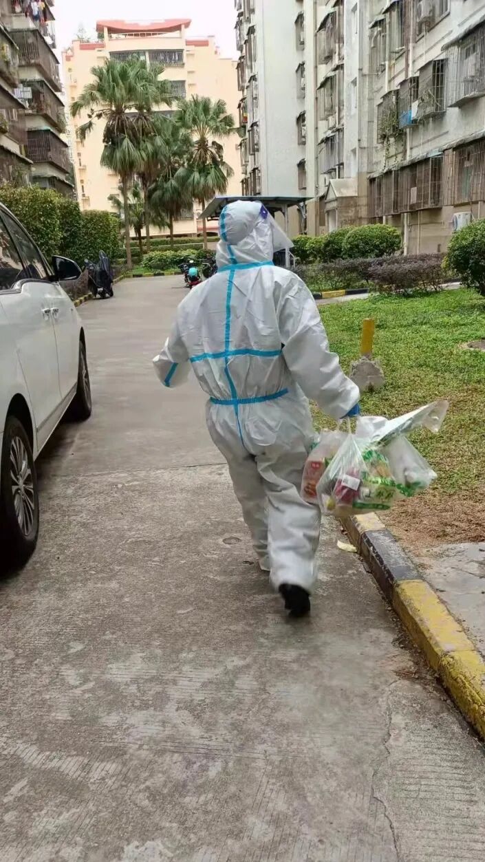 身穿防护服的物管中心工作人员化身“大白”,或协助着医护人员完成现场垃圾收集处理与消毒,或奔忙着为居民递送一件件物资,针对封闭式管理楼栋,为保障居民们的生活所需,暖心的“大白们”奔走于快递集中点与楼栋间,为业主们提供无接触送货上门服务。