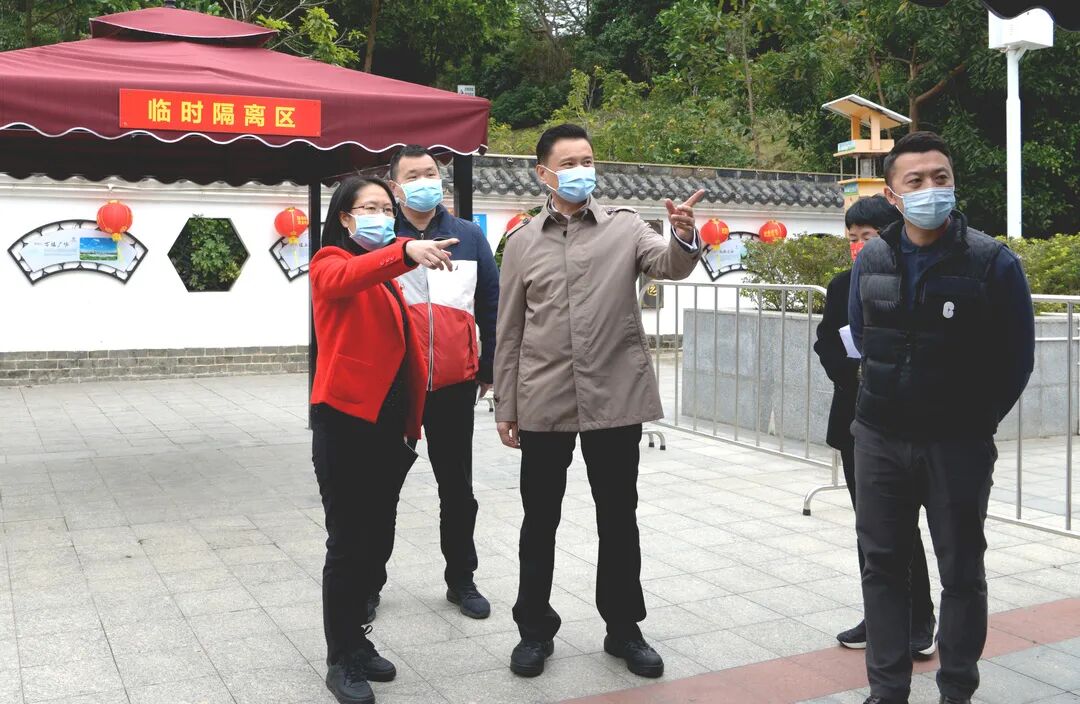 ◎图为宝安区委常委、区纪委书记、区监委主任张松率队前往福永街道翠岗公园大型核酸检测点、社区开展疫情防控检查工作