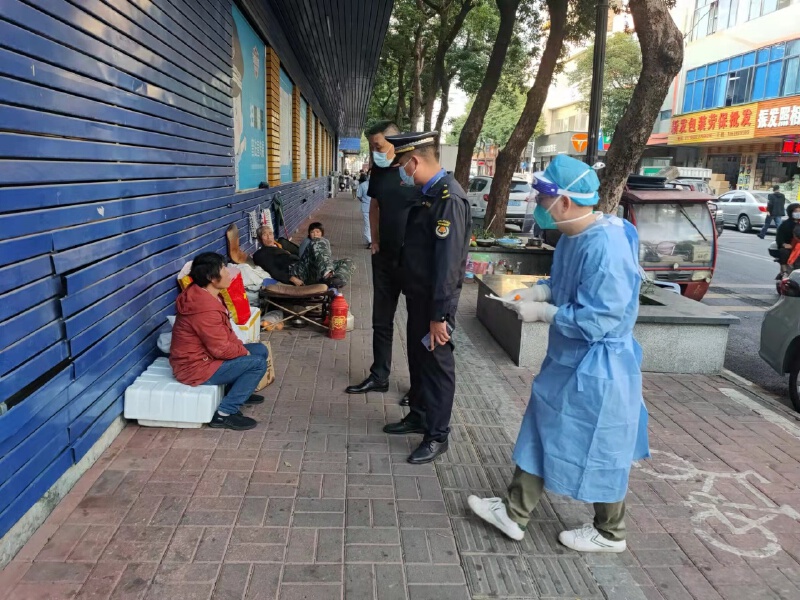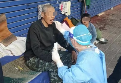 为流浪人员做核酸采样。