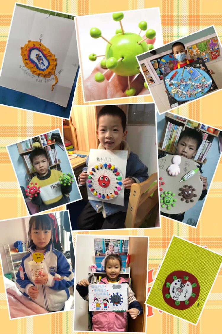 在美术老师的指引下,学生们绘制口罩、制作防疫小手册、防疫立体书,为防疫做最好的宣传;画出最美防疫者,将他们身姿用稚嫩的小笔记录下来。语文剪贴画、数学故事、英语歌曲……语数英老师们每天精心为学生们准备了学习礼包,学生们在诗意、故事、韵律中畅游,既丰富了居家学习生活,又收获了满满的知识。