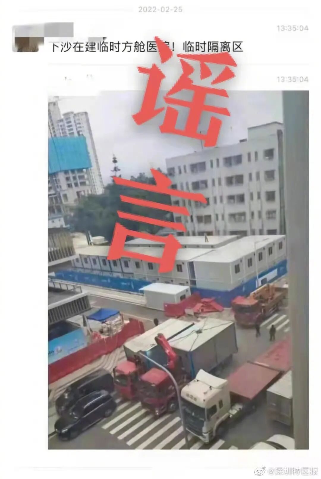 2月25日,有网友在网上发帖称福田区下沙村要建设临时方舱医院、临时隔离区,还配了一张集装箱搭建的图,引发网友热议。据了解,箱式板房的搭建是供抗疫志愿者居住的志愿者之家,仅用12小时就完成了建设,且地址位于上沙社区,“下沙建方舱”的信息实属谣传。