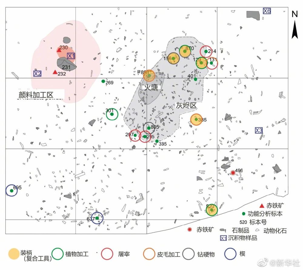 记者从国家文物局3日举行的“考古中国”重大项目重要进展工作会获悉,考古人员在河北蔚县下马碑遗址发现赤铁矿石,火塘及其周边散落的石器、骨器及动物化石碎片等,测年显示该地层年代距今4.1万年至3.9万年。部分赤铁矿石表面发现摩擦痕迹,推测为颜料加工遗存。部分细小石器表面发现骨柄残留和线性排布的植物纤维残留,推测是古人类通过装柄、镶嵌制作的复合工具。此次发现是我国乃至东亚地区目前已知最早的史前人类加工颜料、镶嵌使用细小石器的遗存,对于解读东亚及世界旧石器时代人类文化发展进程具有极为重要的价值。(图片由国家文物局提供)