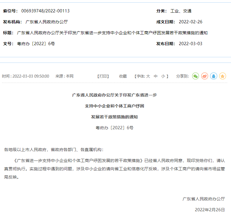 广东省进一步支持中小企业和个体工商户