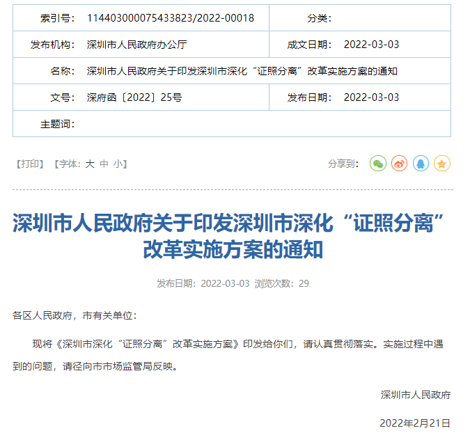 此番深圳印发实施的《深圳市深化“证照分离”改革实施方案》,在于落实上述文件相关要求,而在当前统筹疫情防控和经济社会发展形势下,进一步深化“证照分离”改革,对于促进市场主体发展壮大,稳住经济基本盘也具有积极作用。