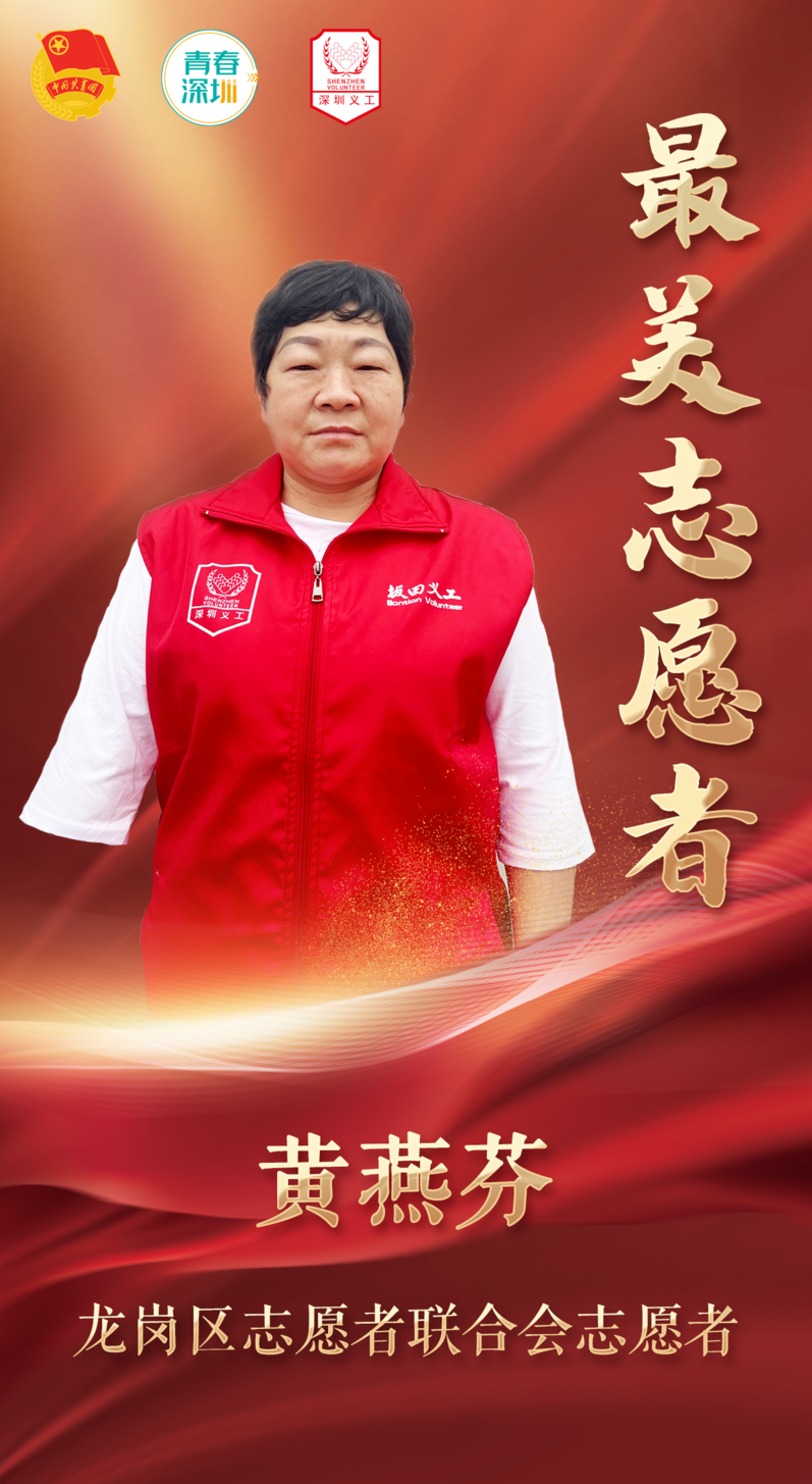 主要事迹:身着红马甲、奋斗在防疫一线的她,身影却有点特别——黄燕芬的右臂短了一小截。但这并不影响她娴熟地开展志愿服务工作。黄燕芬连续多天投入到疫情防控工作中,从早8点到晚6点,她都在核酸检测点协助工作。乐观的她表示,“做志愿者能帮到别人就很开心。”她的事迹鼓励着许多志愿者,激励着大家一起参与疫情防控志愿服务活动,为这个共同的家园贡献自己的一份力量。