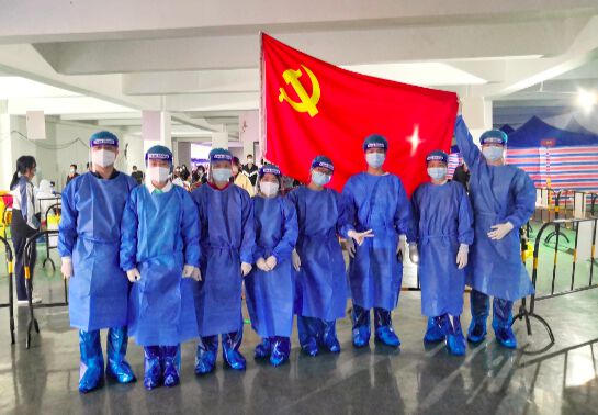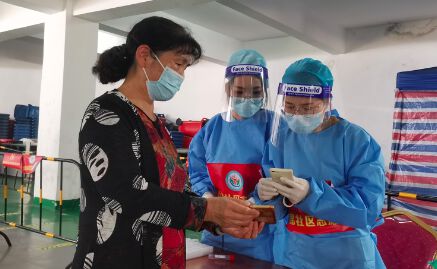当天,两位钟丽老师主动向社区申请安排到扫码员的岗位,她们身着防护服,熟练地核对采样管条码、细心地录入每一位居民的检测信息,一站就是三个小时,无私无畏,她们在“疫”线并肩作战,用认真严谨的作风守护着一方平安。