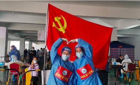 “遇到了和我同名同姓的老师,感谢怡锦社区志愿者这个大家庭,让我们两位姐妹有幸认识仿佛成为了‘亲姐妹’。”除了幼儿园教师之外,在怡锦社区核酸检测的现场,每一处都有巾帼志愿者忙碌的身影,她们团结凝聚在党旗之下,奉献着、行动着,耐心为前来做核酸的居民答疑解惑,引导群众有序排队,保持“一米”安全距离,并协助核对受检人员身份信息,维持现场秩序,疏导群众分批进行检测,坚持做好每一个细节,好像“亲姐妹”一样每天一起用实际行动诠释“巾帼心向党”的真正含义。