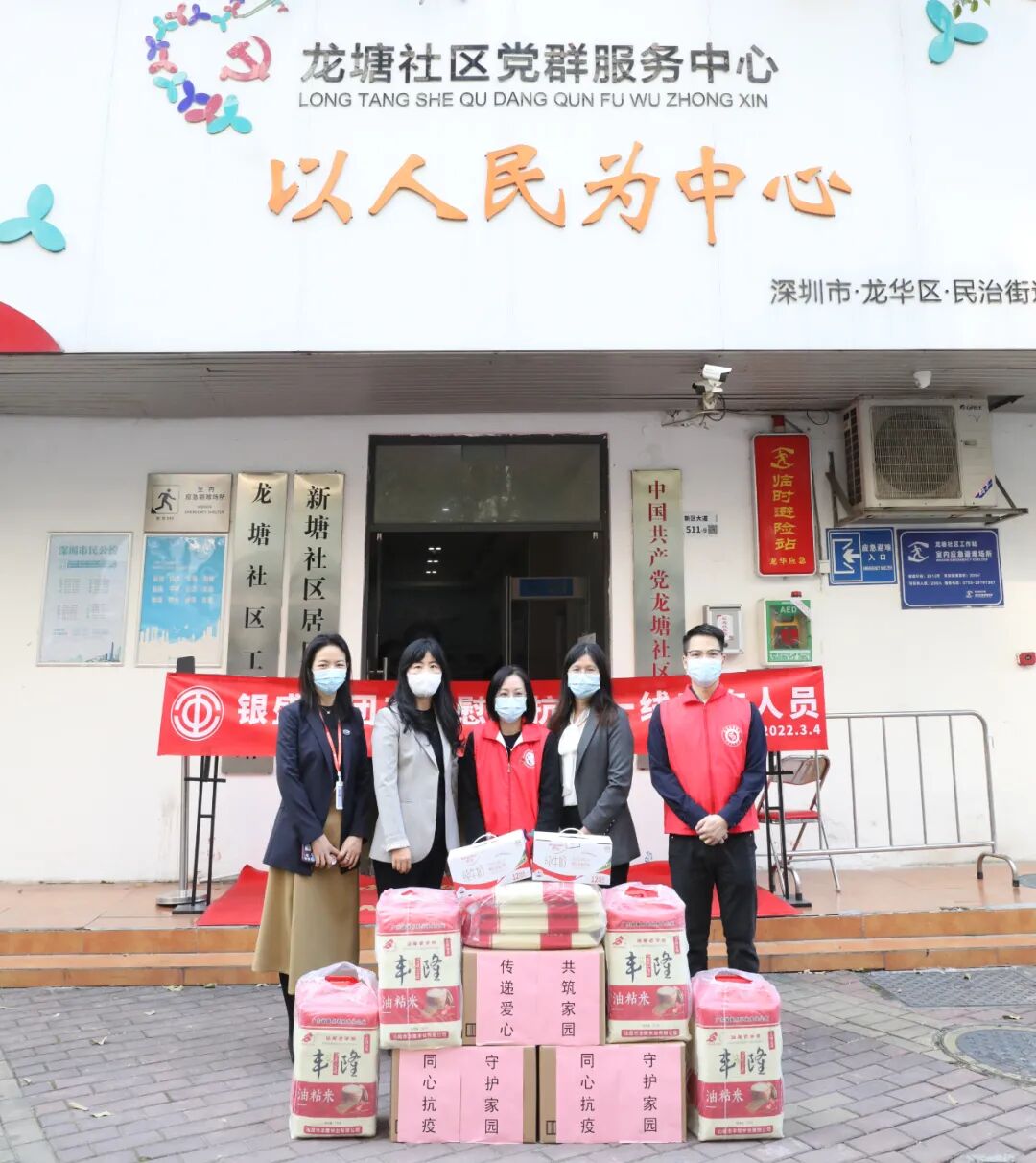 “你关心我,我关心你。这是爱的‘双向奔赴’”。3月4日,银盛集团工会主席洪琼芳、副主席毛丹玲,及龙华区政协委员、银盛投资董事长罗莺等来到龙塘社区工作站,向奋战在一线的防疫工作人员送上牛奶、大米等慰问品,向社区疫情防控工作者传递关怀、增添能量。
