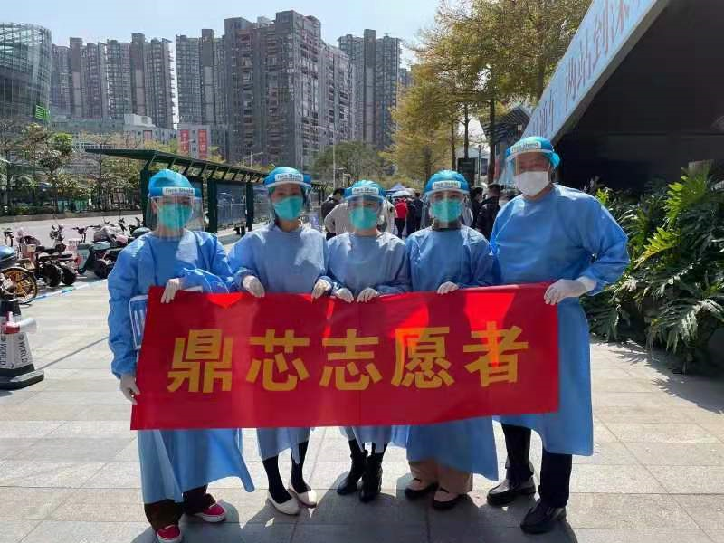 深圳市鼎芯无限科技有限公司党支部发挥党员先锋模范作用,带领公司工作人员不舍昼夜、连续作战,参与疫情防控工作,随时接受应急响应,自觉服从统一调度和防疫工作安排,助力多轮核酸检测,加快推进社会面清零。