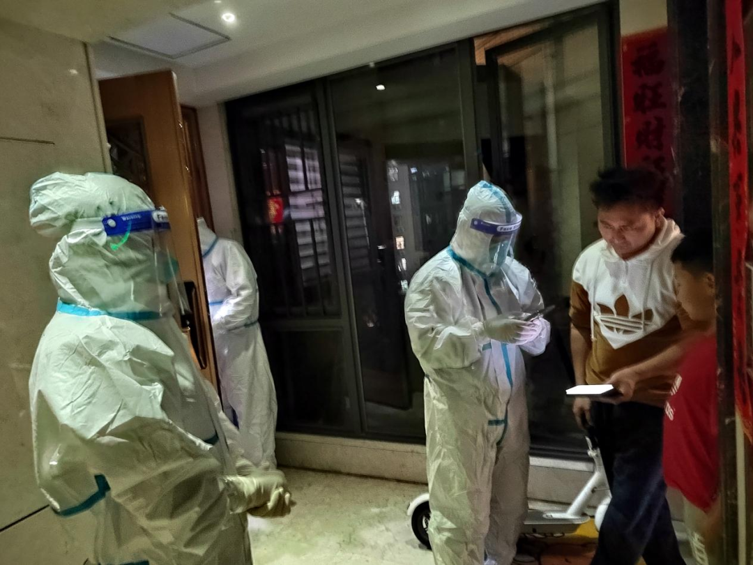 3月2日,张朋被分派到福田区沙头街道下沙社区参加抗疫工作。第二天,张朋所在的核酸采集第二小组,对下沙社区的三栋高层住宅楼宇共142层的811名居民上门逐一进行了核酸采集、住户信息及数量核查工作。
